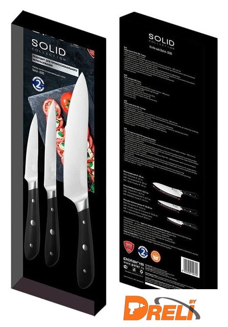 | Комплектация | Нож поварской - 8'' - 20 см.Нож универсальный - 5'' - 12.7 см.Нож для чистки и резки - 3.5" - 9 см. |