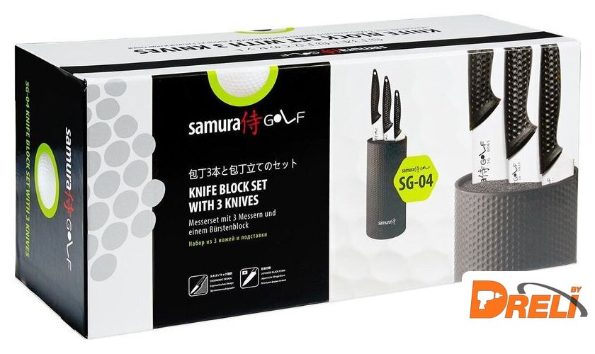 | Комплектация | - Подставка для ножей KBG-101- Нож овощной SG-0010 9.8 см- Нож универсальный SG-0023 15.8 см- Шеф нож SG-0085 22.1 см |