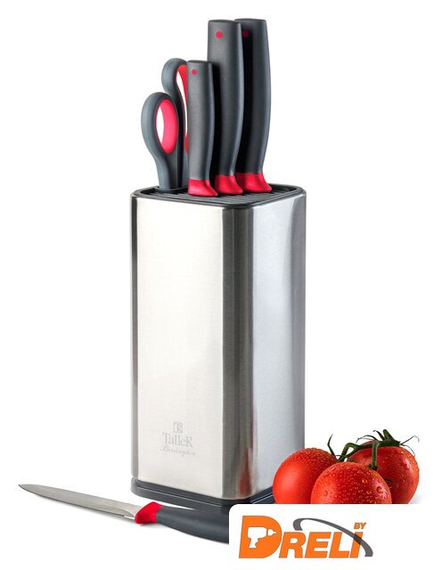 Комплектация | нож поварской 20 см - 1 шт.нож для нарезки 16 см - 1 шт.нож универсальный 12 см - 1 шт.нож для чистки 9 см - 1 шт.ножницы - 21 см, - 1 шт.подставка - 1 шт. |