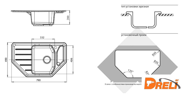 | Способ установки | врезная на столешницу |