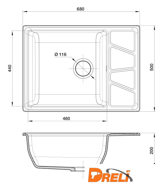 | Ширина мойки | 68 см |