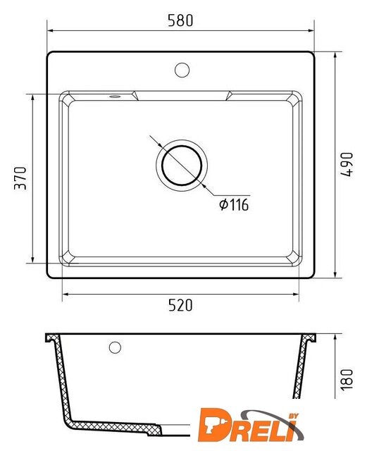 | Диаметр сливного отверстия | 4.6" |