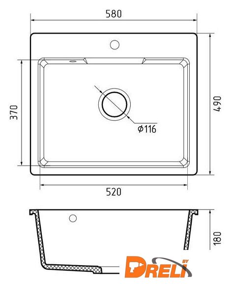 врезная на столешницу, искусственный камень, размеры: 58x49 см, в шкаф 60 см