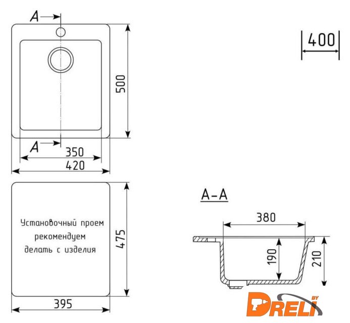| Способ установки | врезная на столешницу |