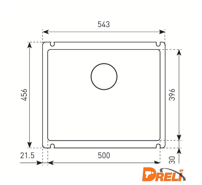 врезная под столешницу, искусственный камень, размеры: 54.3x45.6 см, в шкаф 60 см