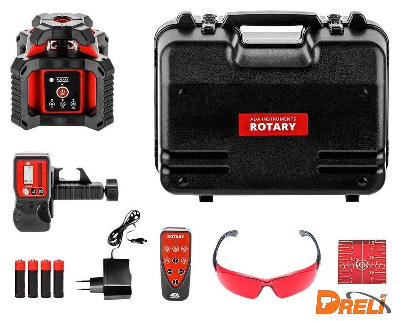 Комплект поставки | Лазерный нивелирПриемник лазерного лучаКрепления приемника лазерного лучаПульт ДУЛазерная мишеньЛазерные очкиЗарядное устройствоПластиковый кейсИнструкция |