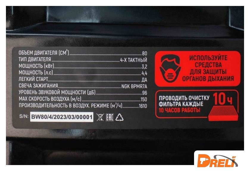 | Комплектация | - Бензиновая воздуходувка- Сопло воздуходувки- Наплечные ремни- Руководство по эксплуатации |