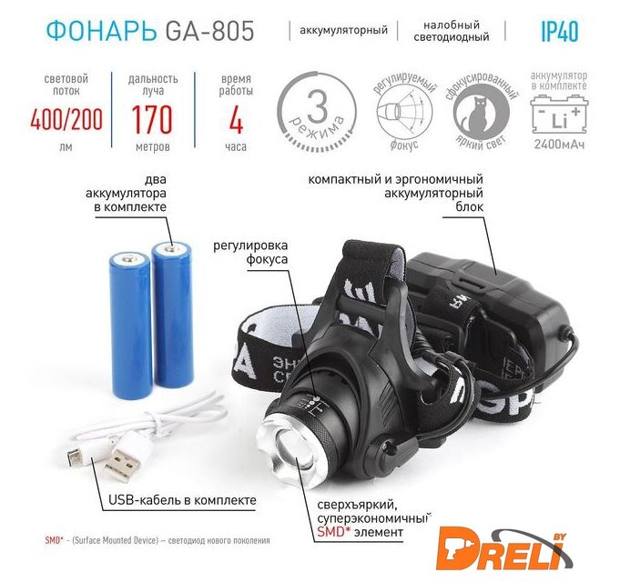 | Комплект поставки | - Фонарь- Ремешок- Аккумулятор x2- USB кабель- Документация |