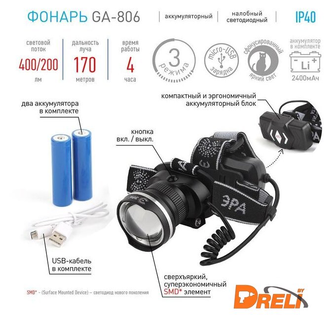 | Комплект поставки | - Фонарь- Ремешок- Аккумулятор x2- USB кабель- Документация |