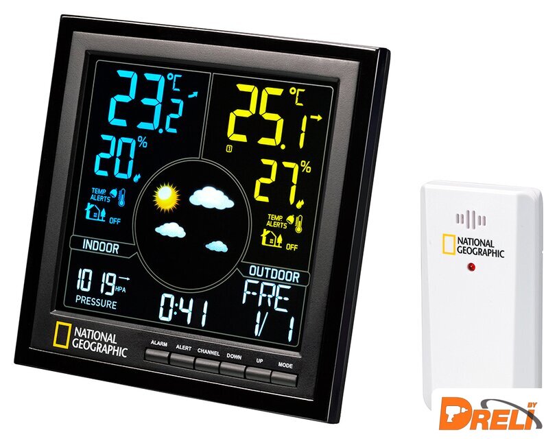 | Особенности | Метеофункции: термометр, гигрометр и барометрДополнительно: часы, будильник и календарьПрогноз погоды на период от 12 до 24 часовПитание от сети или батареекБеспроводной термогигродатчик в комплекте |