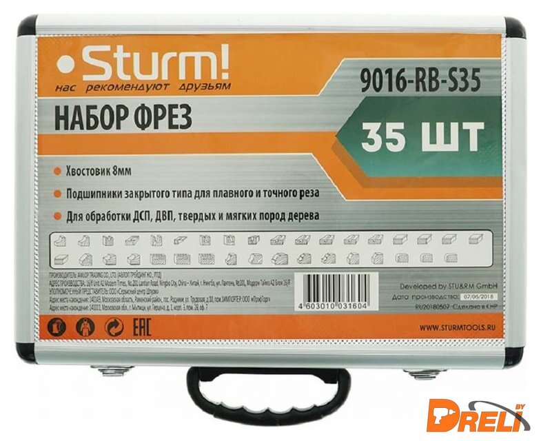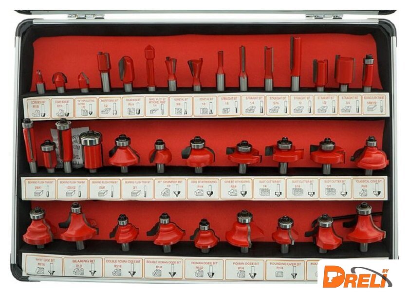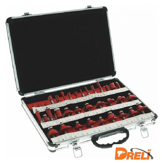 Комплектация | - Фреза галтельная 8 мм - 3 шт- Фреза пазовая v-образная 8 мм- Фреза пазовая прямая 8 мм - 5 шт- Фреза конструкционная "ласточкин хвост" 8 мм - 2 шт- Фреза кромочная прямая 8 мм - 6 шт- Фреза калевочная 8 мм - 13 шт- Фреза шлицевая 8 мм- Фреза фальцевая 8 мм - 3 шт- Фреза конусная 8 мм |