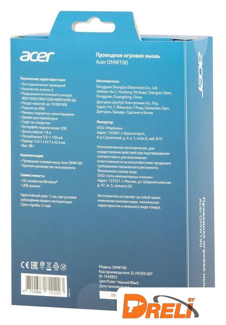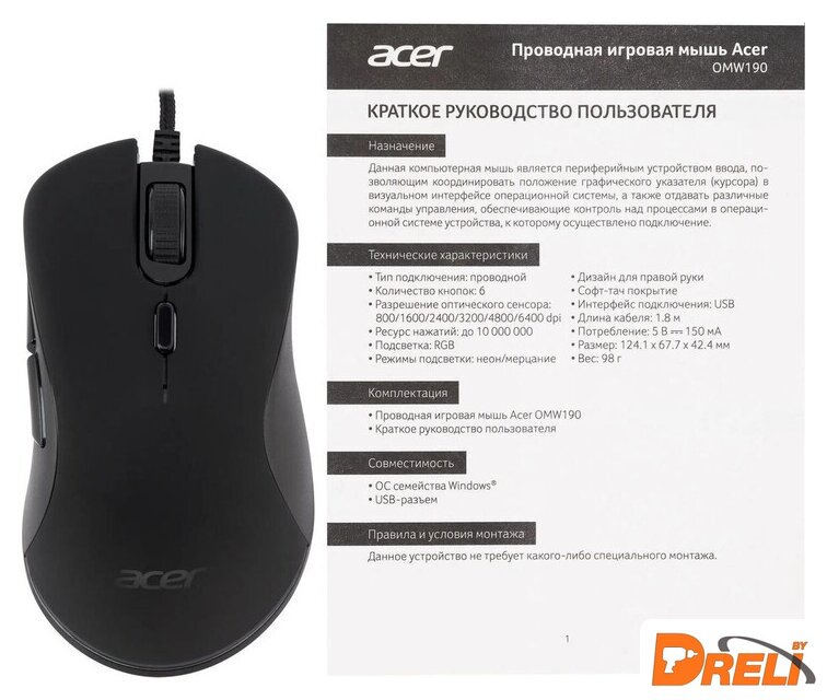 Размеры и вес мыши |