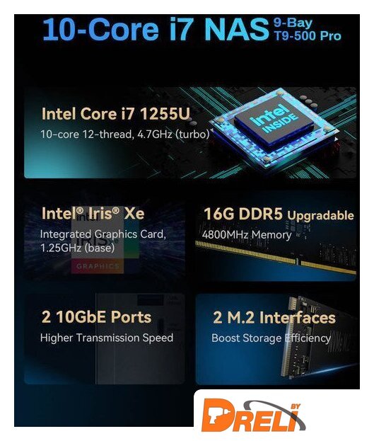 | Максимальный объем накопителей | до 198 ТБ (9 x 22 ТБ HDD); с расширением через USB DAS - до 330 ТБ |