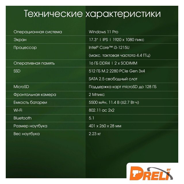1920 x 1080 IPS, Intel Core i3 1215U, 16 ГБ, SSD 512 ГБ, встроенная, Windows 11 Pro, цвет крышки серый