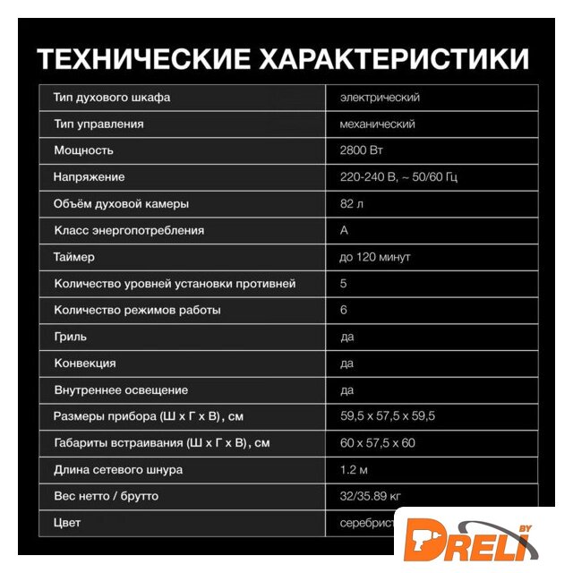 Объём духового шкафа | 82 л |