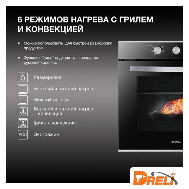 Режимы работы | нижний нагрев, двухсторонний нагрев, гриль + конвекция, двухсторонний нагрев + конвекция, размораживание |