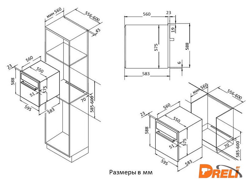 Размеры ниши для встраивания |