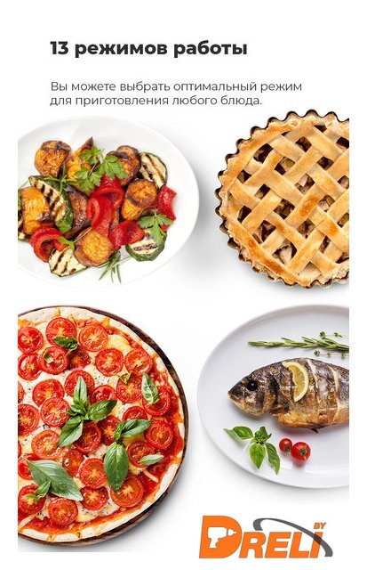 Режимы работы | вентиляционный нагрев, гриль + конвекция, нижний + вентиляционный нагрев, размораживание |