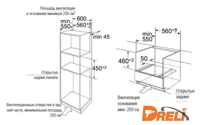 Размеры ниши для встраивания |