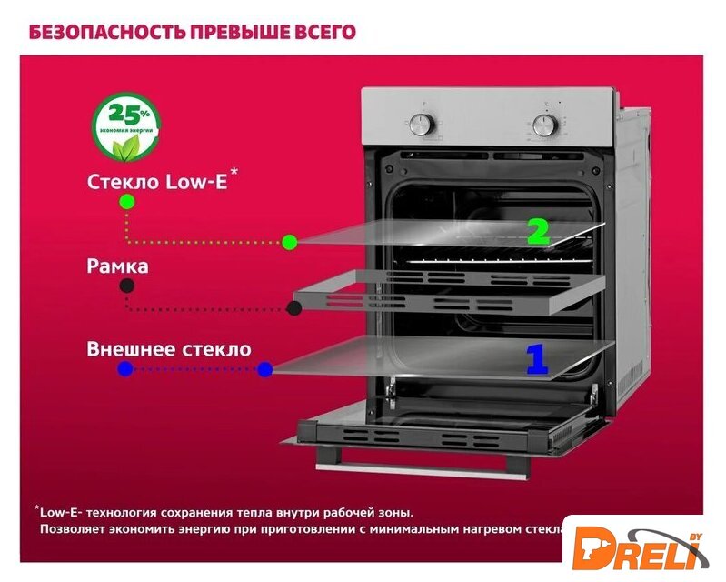 | Количество стекол дверцы духовки | 2 |