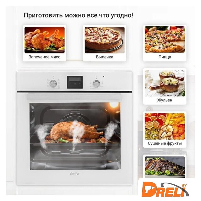 Режимы работы | двухсторонний нагрев, гриль + конвекция, нижний нагрев + конвекция, двухсторонний нагрев + конвекция |
