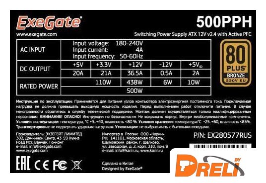 Сертификат 80 PLUS | бронзовый |