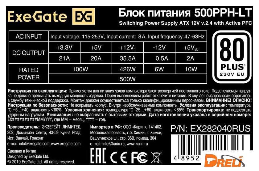 | Стандарт блока питания | ATX12V 2.4 |