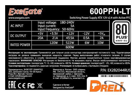 | Макс. ток по линии +12V | 43.5 А |