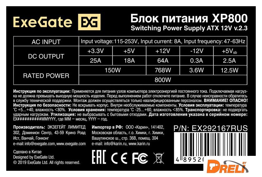 | Стандарт блока питания | ATX12V 2.3 |
