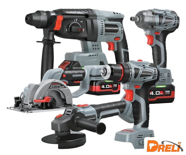 | Состав набора | гайковерт, дрель-шуруповерт, перфоратор, угловая шлифовальная машина, циркулярная пила |