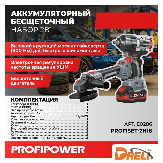 | Состав набора | гайковерт, угловая шлифовальная машина |