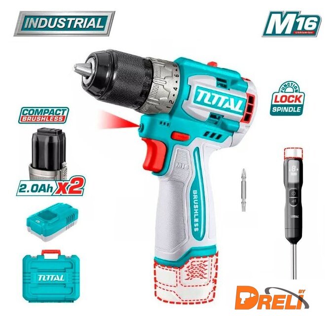 | Комплектация | - Дрель-шуруповерт TDLI16681 - 1 шт.- Аккумулятор TFBLI1620 2,0 А*ч - 2 шт.- Зарядное устройство TFCLI1613 - 1 шт.- Двухсторонняя бита - 1 шт.- Аккумуляторный погружной блендер TOTAL TJB047K - 1 шт.- Кейс |