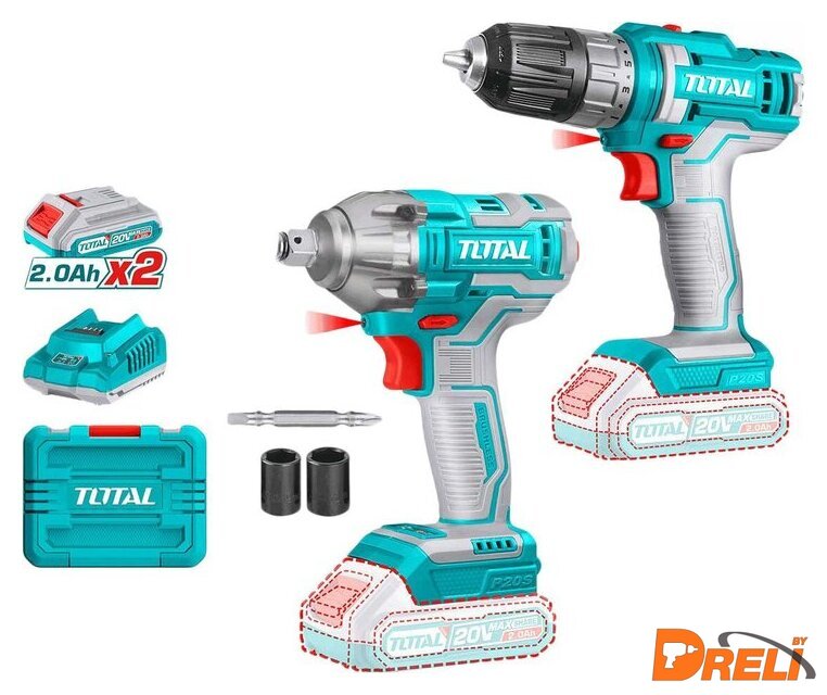 | Комплектация | - Дрель-шуруповерт TDLI200528 - 1 шт.- Гайковерт TIWLI2038 - 1 шт.- Аккумулятор TFBLI20011 2,0 Ач - 2 шт.- Зарядное устройство TFCLI2001 - 1 шт.- Двухсторонняя бита 65 мм Cr-V - 1 шт.- Торцевые головки 19 и 21 мм - 2 шт.- Кейс |