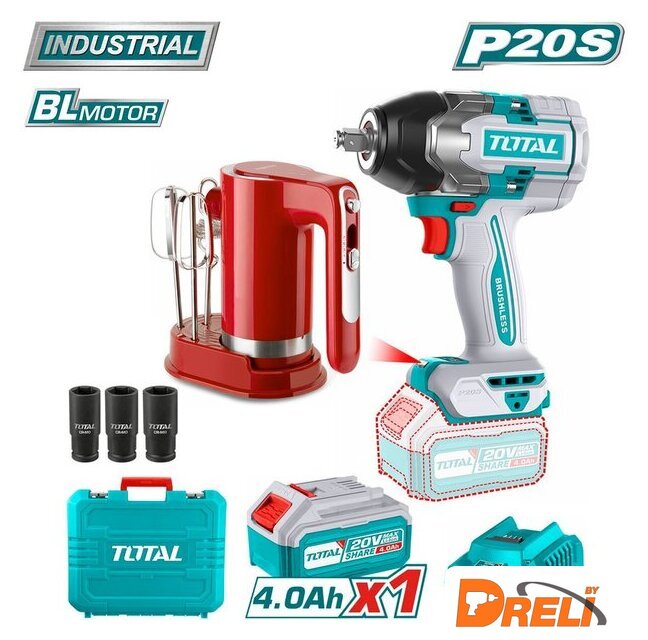 | Комплектация | - Гайковерт TOTAL TIWLI20851 - 1 шт.- Аккумулятор TFBLI2002 4,0 Ач - 1 шт.- Зарядное устройство TFCLI2001E - 1 шт.- Торцевая головка (22, 24, 27 мм) - 3 шт.- Миксер TMK006H - 1 шт.- Венчики - 2 шт.- Вспениватель молока - 1 шт.- Кейс |