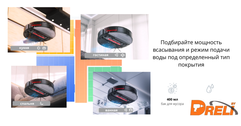 | Функциональные особенности | локальная уборка, уборка по расписанию, виртуальная стена в приложении, автовозврат на базу |