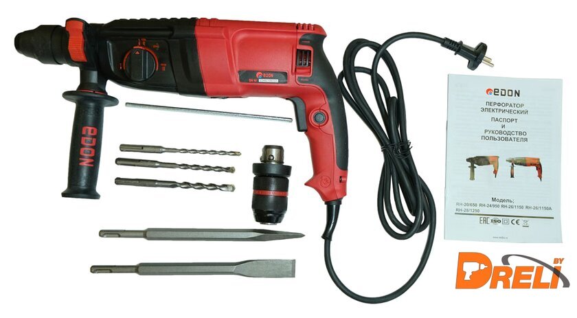 Комплект поставки | - Перфоратор - 1 шт.;- Долото SDS-plus - 1 шт.;- Пика SDS-plus - 1 шт.;- Бур SDS-plus 6 мм - 1 шт.;- Бур SDS-plus 8 мм - 1 шт.;- Бур SDS-plus 10 мм - 1 шт.;- Патрон SDS-plus - 1 шт.;- Стержень ограничитель - 1 шт.;- Руководство по эксплуатации - 1 шт.;- Пластиковый кейс - 1 шт. |