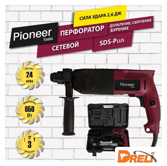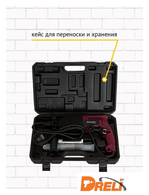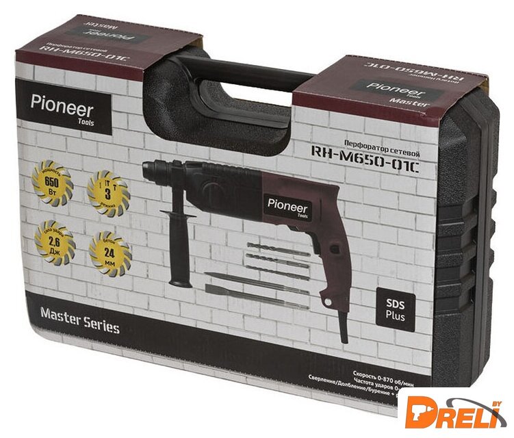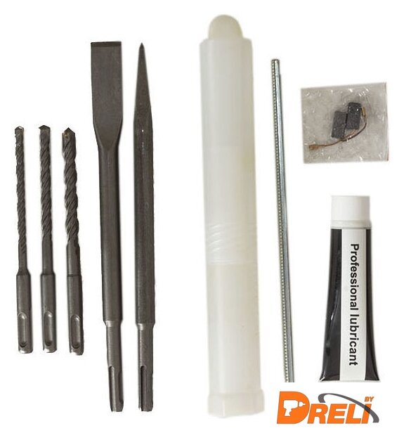 Комплект поставки | - перфоратор, - дополнительная рукоятка, - ограничитель глубины сверления, - буры 3 шт. (6 мм, 8 мм, 10 мм), - смазка для буров, - долото острое, - долото плоское, - чемодан для хранения и переноски, - руководство по эксплуатации, - гарантийный талон. |