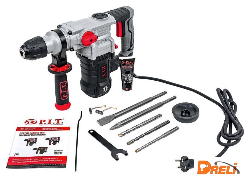 Комплект поставки | - перфоратор- пластиковый кейс- дополнительная рукоятка- ключ- щетки угольные- буры (3 шт)- зубило плоское- зубило пикообразное- смазка для редуктора- пыльник- ограничитель глубины сверления- инструкция по эксплуатации |