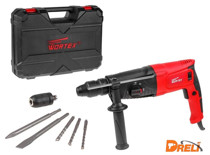 | Комплект поставки | - ограничитель глубины сверления- дополнительная рукоятка- быстрозажимной патрон- 3 сверла- 2 зубила- документацияПоставляется в пластиковом кейсе |