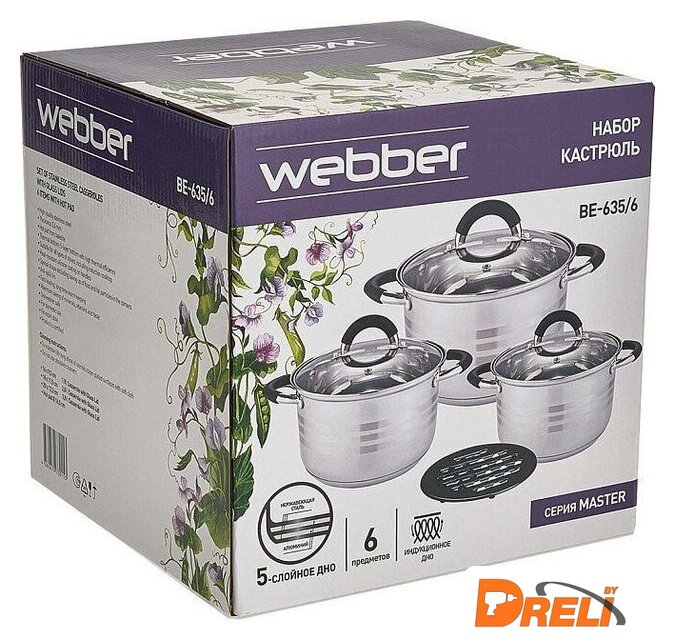 | Состав набора | Состав набора Webber включает три кастрюли с объемами: 1,9 л, 2,8 л и 3,8 л. |