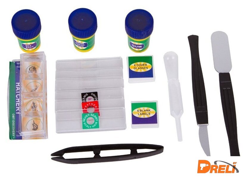 | Состав набора | Микроскоп, Окуляр, Пипетка, Готовые микропрепараты (3 шт.), Предметные стекла (3 шт.), Покровные стекла (6 шт.), Наклейки для стекол (6 шт.), Фиксатор, Морская соль, Флакон с артемией, Инкубатор для артемии, Лопаточка, Скальпель, Пестик |