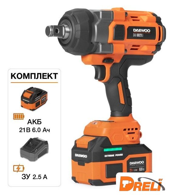 Комплектация | - Гайковерт - 1 шт.- Аккумулятор 6,0 Ач - 1 шт.- Зарядное устройство - 1 шт.- Инструкция- Кейс |