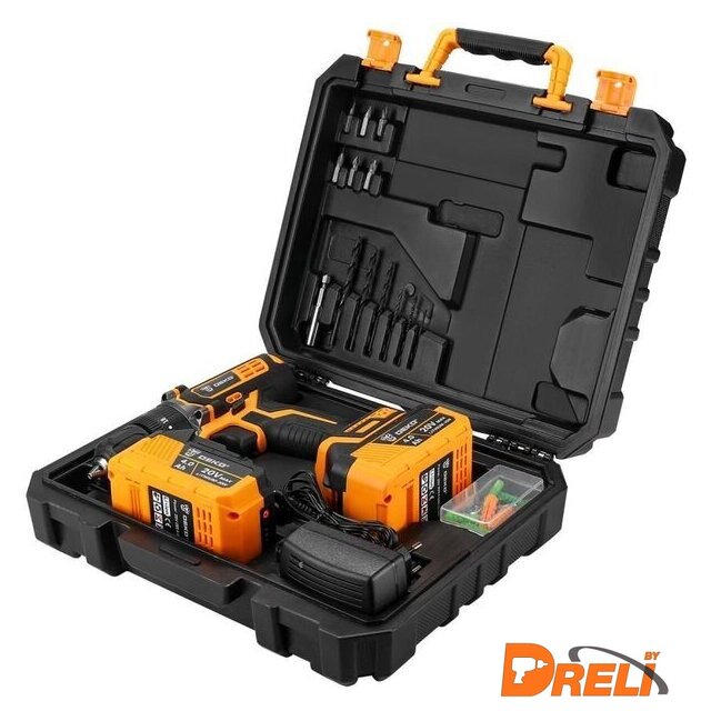 Комплектация | Дрель-шуруповерт ударная - 1 шт.Аккумулятор 4,0 Ач - 2 шт.Зарядное устройство - 1 шт.Сверла (2, 2.5, 3, 4, 5, 6 мм) - 6 шт.Биты (SL4, 6, PH1, 2, PZ1, 2) - 6 шт.Магнитный удлинитель (60 мм) - 1 шт.Крепеж - 50 шт.ИнструкцияКейс |