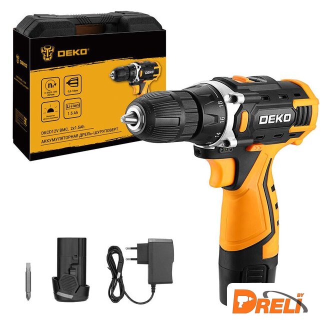 | Комплектация | Дрель-шуруповерт - 1 шт.Аккумулятор 1,5 Ач - 2 шт.Зарядное устройство - 1 шт.Бита - 1 шт.Руководство по эксплуатации - 1 шт.Кейс - 1 шт. |