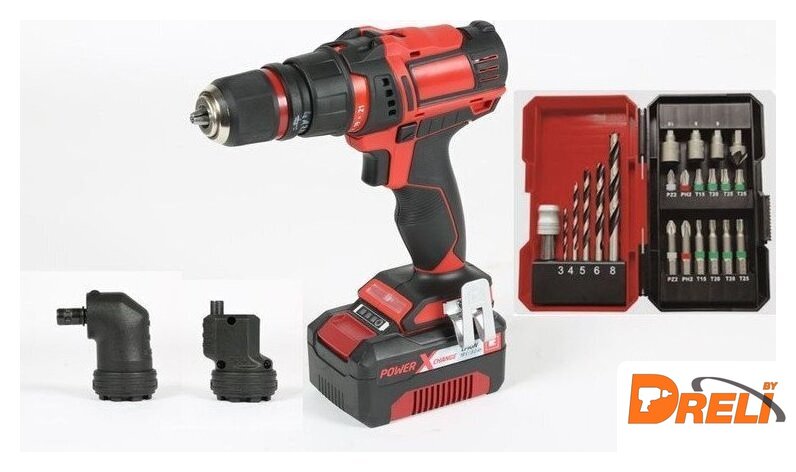 | Оснастка и инструмент в комплекте | угловой патрон, эксцентриковый патрон, сверла, биты (насадки-отвертки) |