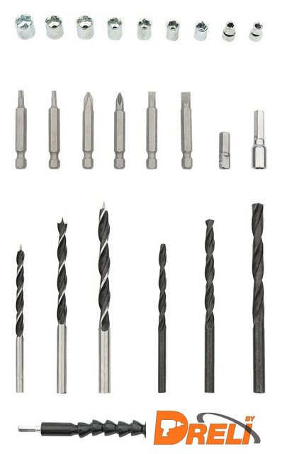 | Оснастка и инструмент в комплекте | сверла, биты (насадки-отвертки), слесарная головка |