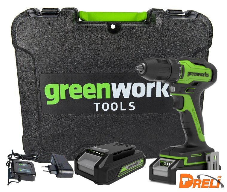Комплектация | Дрель-шуруповертАккумулятор Greenworks 24V 2АчЗарядное устройство слайдер (0,5 А)Пластиковый кейсРуководство по эксплуатации |