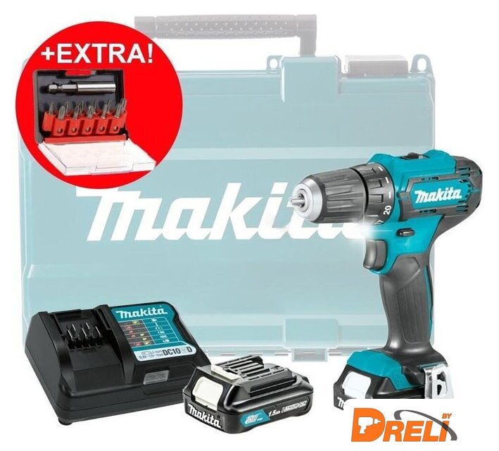 Комплектация | - Аккумуляторная дрель-шуруповерт;- 2 аккумулятора 12 В 1,5 Ач;- Зарядное устройство;- Крепление для пояса;- Руководство по эксплуатации;- Кейс;- Набор бит D-31083. |