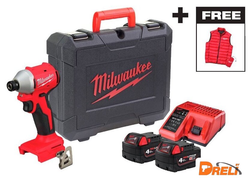 | Комплектация | - Аккумуляторный импульсный винтоверт Milwaukee M18 BLIDRC-402C (замена для 4933464534)( (Арт. 4933492840) - 1 шт- Аккумулятор Milwaukee M18 B4 4Ач (замена для 4931440022)( (Арт. 4932430063) - 2 шт- Быстрое зарядное устройство M12-M18 FC - 1 шт- Жилетка Milwaukee - 1 шт- Инструкция по эксплуатации- Кейс |