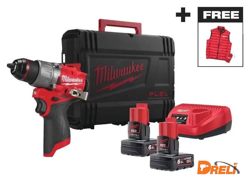 | Комплектация | - Дрель-шуруповерт M12 FPD2-0- Два аккумулятора M12 B6 6.0 Ач- Зарядное устройство C12 C- HD Box (Динакейс)- Пуховый жилет |